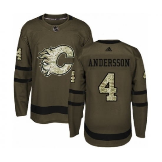 >Men's Adidas Calgary Flames #4 Rasmus Andersson Authentic Green Salute to Service NHL Jersey