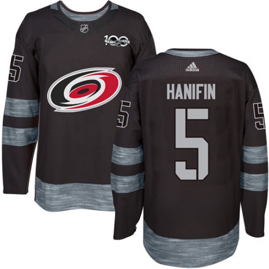 Home>NHL>Carolina Hurricanes>Noah Hanifin>Men's Adidas Carolina Hurricanes #5 Noah Hanifin Premier Black 1917-2017 100th Anniversary NHL Jersey