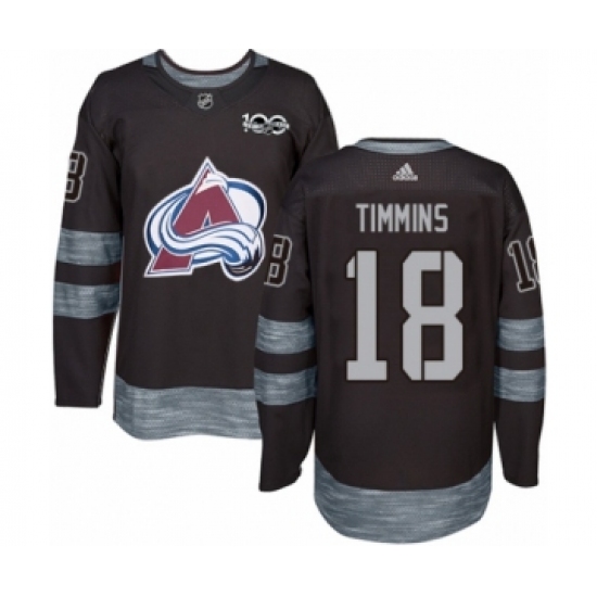 >Men's Adidas Colorado Avalanche #18 Conor Timmins Authentic Black 1917-2017 100th Anniversary NHL Jersey
