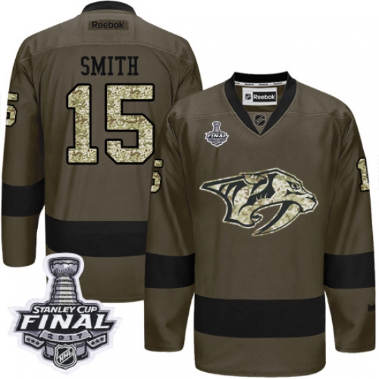 Home>NHL>Nashville Predators>Craig Smith>Men's Adidas Nashville Predators #15 Craig Smith Authentic Green Salute to Service 2017 Stanley Cup Final NHL Jersey