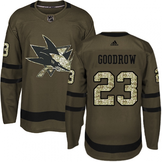Home>NHL>San Jose Sharks>Barclay Goodrow>Men's Adidas San Jose Sharks #23 Barclay Goodrow Premier Green Salute to Service NHL Jersey