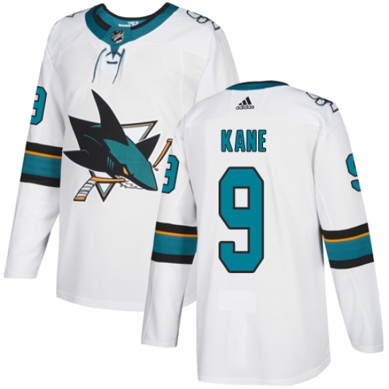 Men's Adidas San Jose Sharks #9 Evander Kane Authentic White Away NHL Jersey