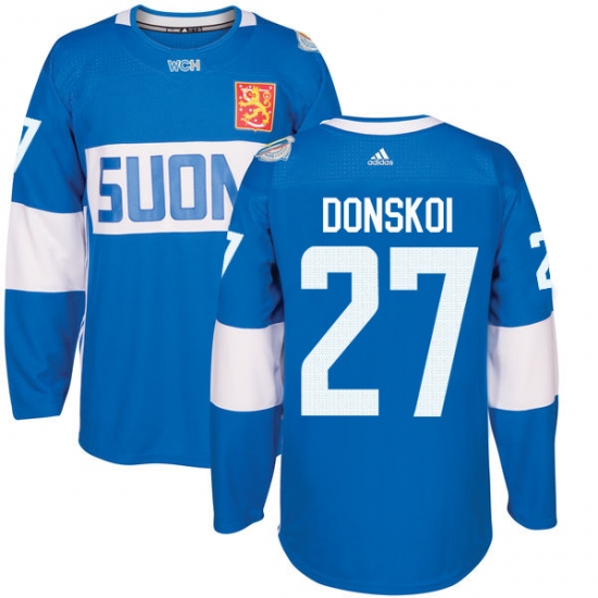 Home>NHL>Team Finland>Joonas Donskoi>Men's Adidas Team Finland #27 Joonas Donskoi Premier Blue Away 2016 World Cup of Hockey Jersey