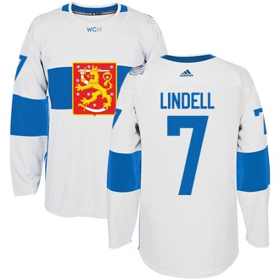 Men's Adidas Team Finland #7 Esa Lindell Authentic White Home 2016 World Cup of Hockey Jersey