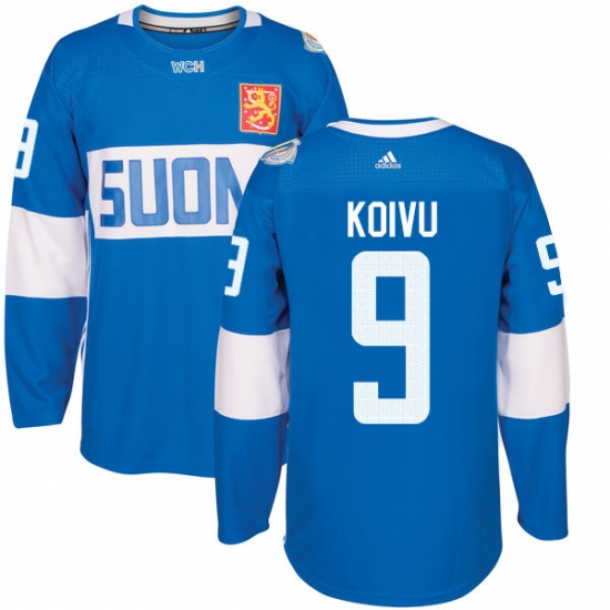 Men's Adidas Team Finland #9 Mikko Koivu Authentic Blue Away 2016 World Cup of Hockey Jersey