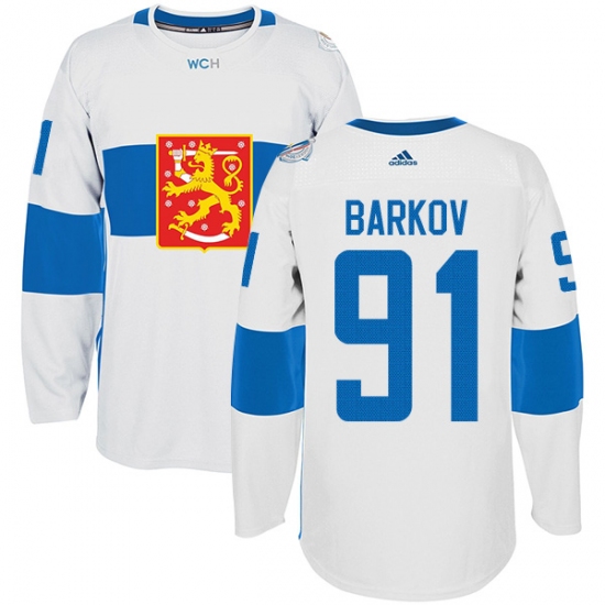 Men's Adidas Team Finland #91 Aleksander Barkov Premier White Home 2016 World Cup of Hockey Jersey