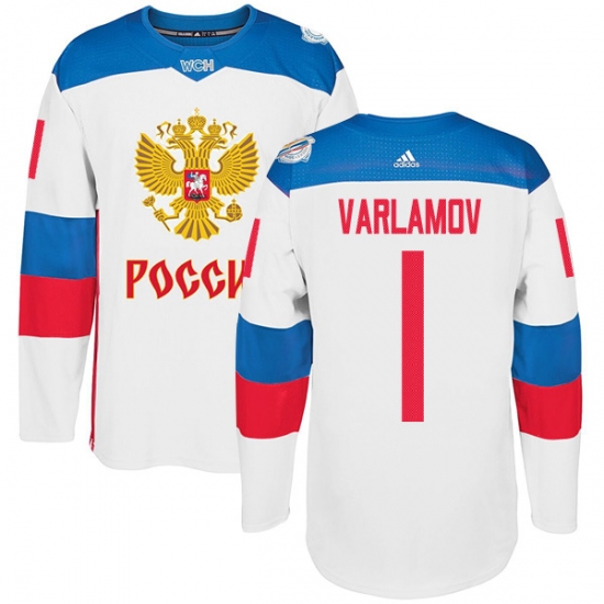 Men's Adidas Team Russia #1 Semyon Varlamov Authentic White Home 2016 World Cup of Hockey Jersey
