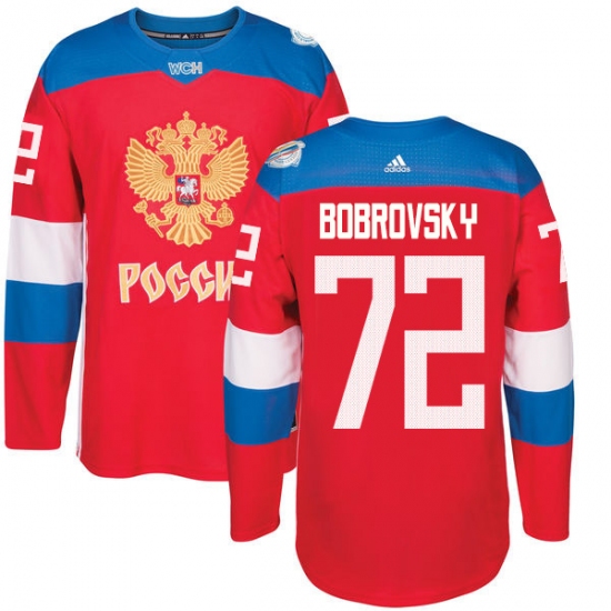 Home>NHL>Team Russia>Sergei Bobrovsky>Men's Adidas Team Russia #72 Sergei Bobrovsky Authentic Red Away 2016 World Cup of Hockey Jersey
