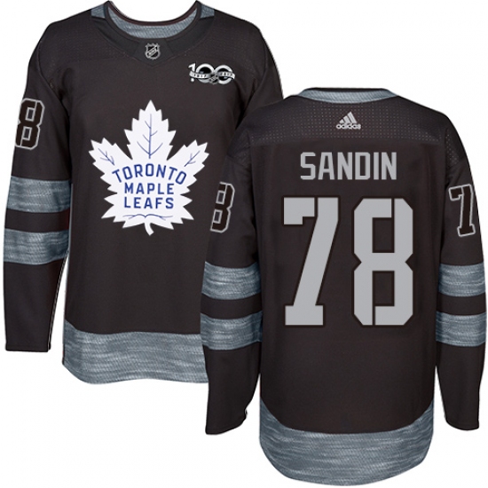 Men's Adidas Toronto Maple Leafs #78 Rasmus Sandin Authentic Black 1917-2017 100th Anniversary NHL Jersey