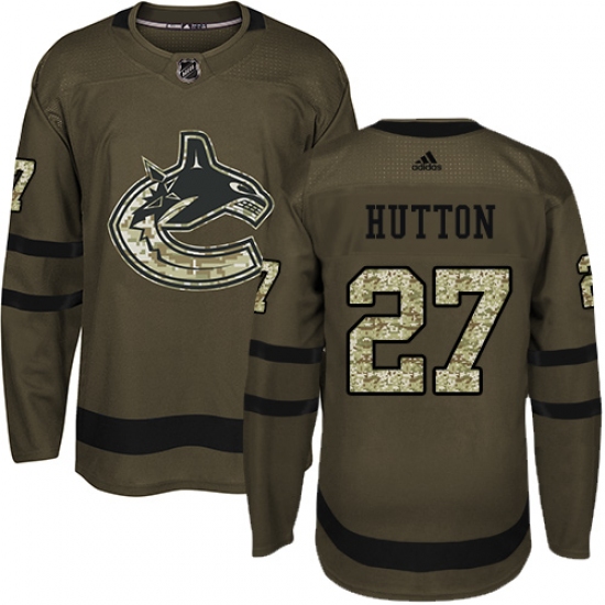 Home>NHL>Vancouver Canucks>Ben Hutton>Men's Adidas Vancouver Canucks #27 Ben Hutton Authentic Green Salute to Service NHL Jersey