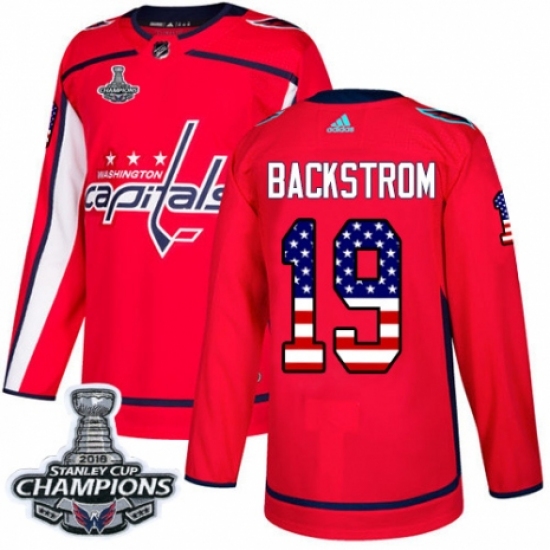 Men's Adidas Washington Capitals #19 Nicklas Backstrom Authentic Red USA Flag Fashion 2018 Stanley Cup Final Champions NHL Jersey