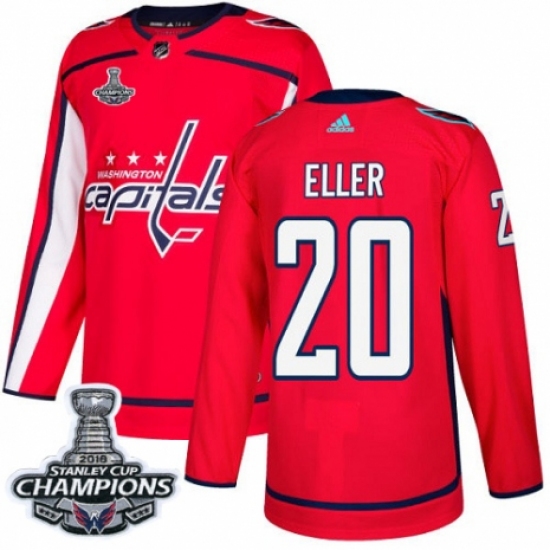 Men's Adidas Washington Capitals #20 Lars Eller Authentic Red Home 2018 Stanley Cup Final Champions NHL Jersey