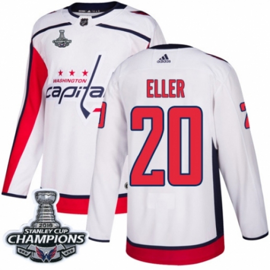 Men's Adidas Washington Capitals #20 Lars Eller Authentic White Away 2018 Stanley Cup Final Champions NHL Jersey