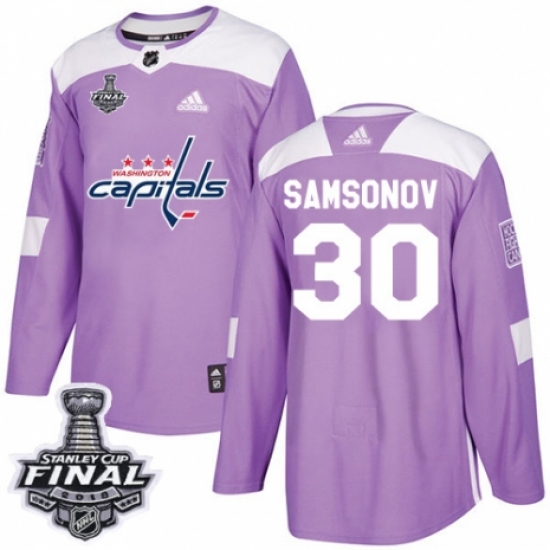 >Men's Adidas Washington Capitals #30 Ilya Samsonov Authentic Purple Fights Cancer Practice 2018 Stanley Cup Final NHL Jersey