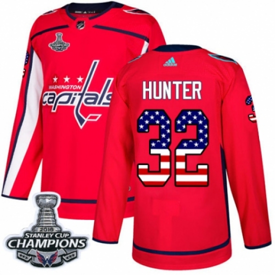 >Men's Adidas Washington Capitals #32 Dale Hunter Authentic Red USA Flag Fashion 2018 Stanley Cup Final Champions NHL Jersey