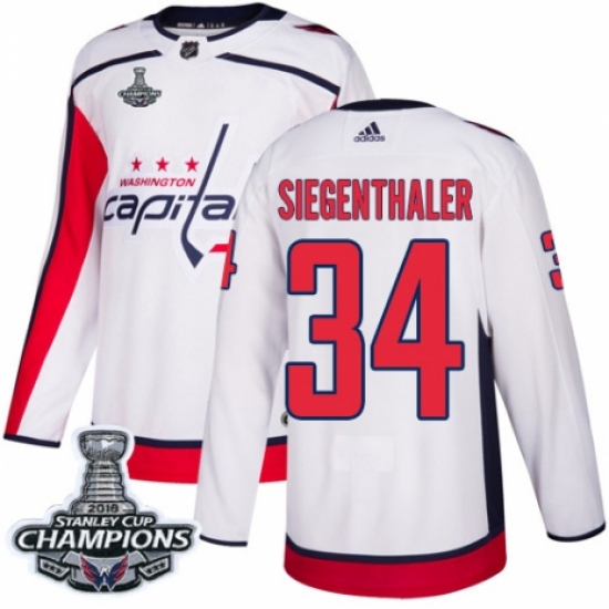 Men's Adidas Washington Capitals #34 Jonas Siegenthaler Authentic White Away 2018 Stanley Cup Final Champions NHL Jersey