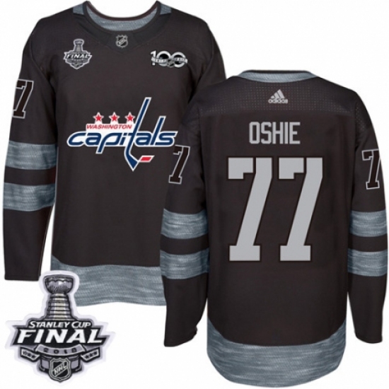 Men's Adidas Washington Capitals #77 T.J. Oshie Authentic Black 1917-2017 100th Anniversary 2018 Stanley Cup Final NHL Jersey