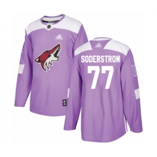 >Men's Arizona Coyotes #77 Victor Soderstrom Authentic Purple Fights Cancer Practice Hockey Jersey
