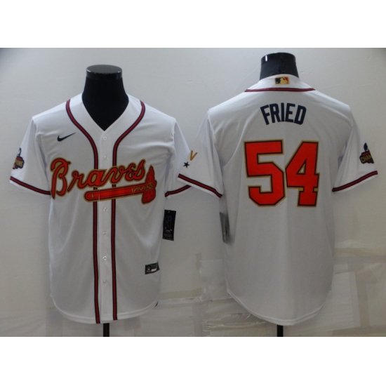 >Men's Atlanta Braves #54 Max Fried Nike White 2022 Gold Program Authentic Player Jersey