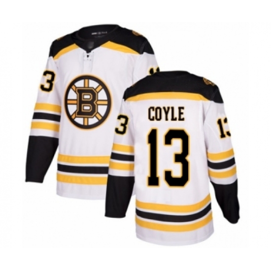 Men's Boston Bruins #13 Charlie Coyle Authentic White Away Hockey Jersey