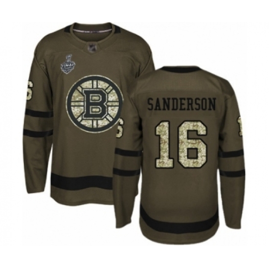 Men's Boston Bruins #16 Derek Sanderson Authentic Green Salute to Service 2019 Stanley Cup Final Bound Hockey Jersey