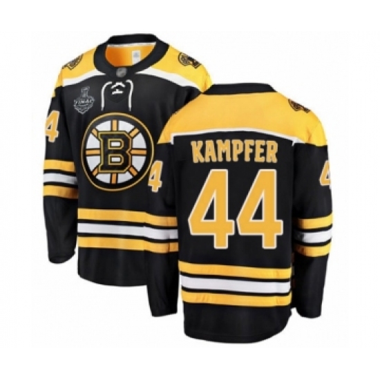 >Men's Boston Bruins #44 Steven Kampfer Authentic Black Home Fanatics Branded Breakaway 2019 Stanley Cup Final Bound Hockey Jersey