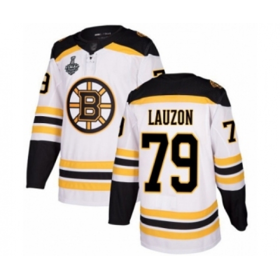 Men's Boston Bruins #79 Jeremy Lauzon Authentic White Away 2019 Stanley Cup Final Bound Hockey Jersey