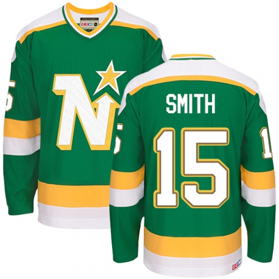 Men's CCM Dallas Stars #15 Bobby Smith Premier Green Throwback NHL Jersey