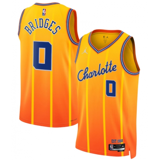 >Men's Charlotte Hornets #0 Miles Bridges Gold 2025-26 City Edition Swingman Stitched Jersey