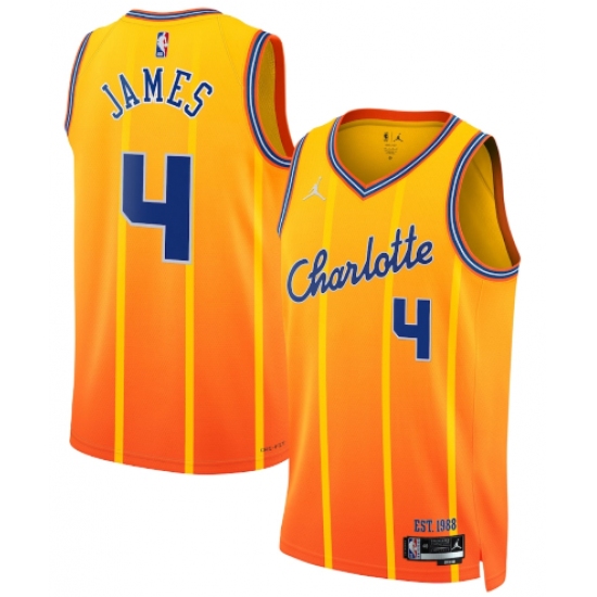 Men's Charlotte Hornets #4 Sion James Gold 2025-26 City Edition Swingman Stitched Jersey