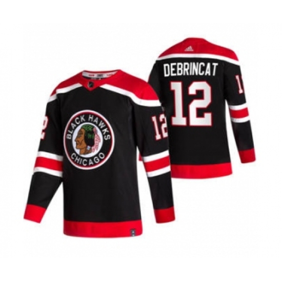 >Men's Chicago Blackhawks #12 Alex DeBrincat Black 2020-21 Reverse Retro Alternate Hockey Jersey