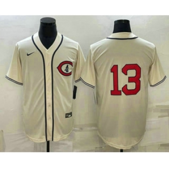 >Men's Chicago Cubs #13 David Bote 2022 Cream Field of Dreams Cool Base Stitched Baseball Jersey
