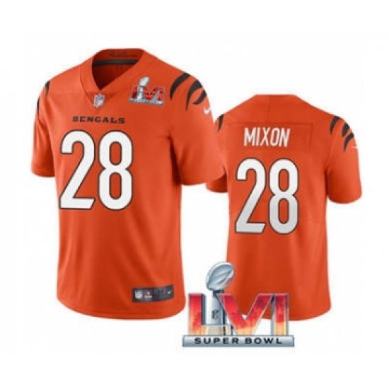 Men's Cincinnati Bengals #28 Joe Mixon Orange 2022 Super Bowl LVI Vapor Limited Stitched Jersey