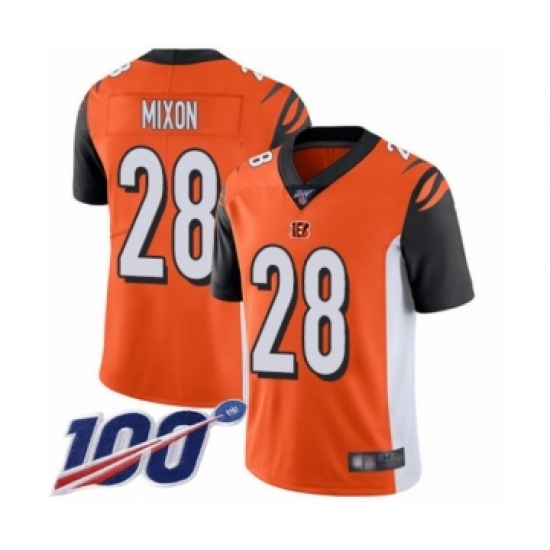 Men's Cincinnati Bengals #28 Joe Mixon Orange Alternate Vapor Untouchable Limited Player 100th Season Football Jersey
