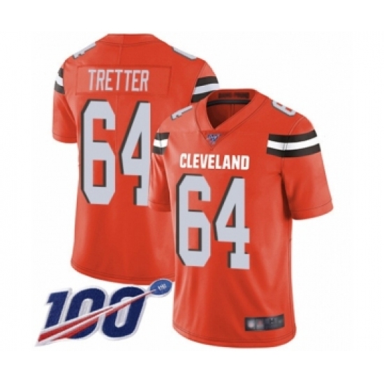 Men's Cleveland Browns #64 JC Tretter Orange Alternate Vapor Untouchable Limited Player 100th Season Football Jersey