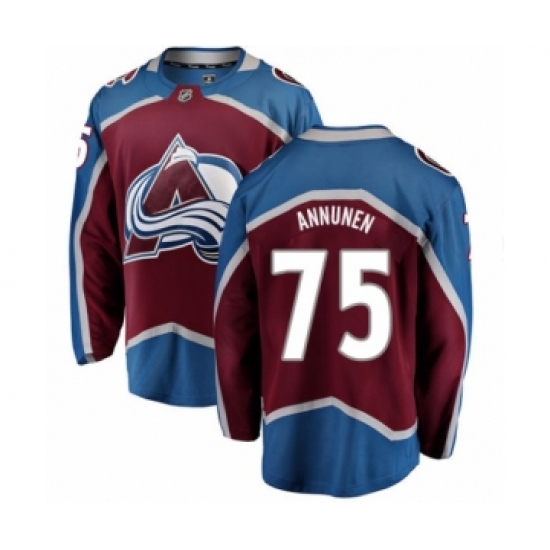 >Men's Colorado Avalanche #75 Justus Annunen Authentic Maroon Home Fanatics Branded Breakaway NHL Jersey