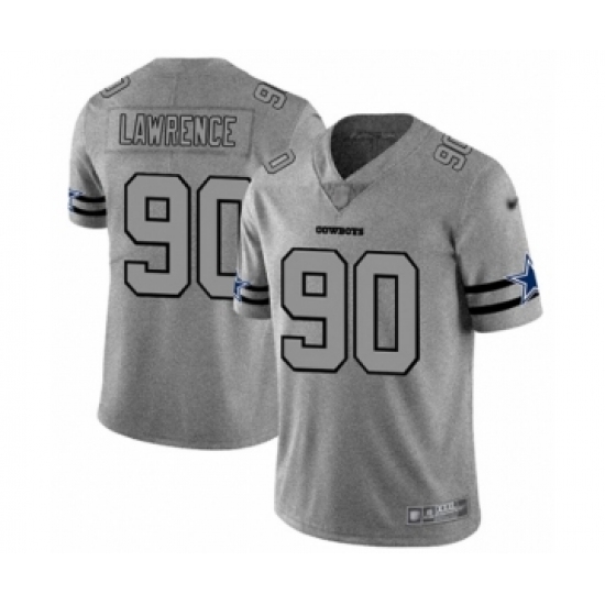 >Men's Dallas Cowboys #90 DeMarcus Lawrence Gray Team Logo Gridiron Limited Football Jersey