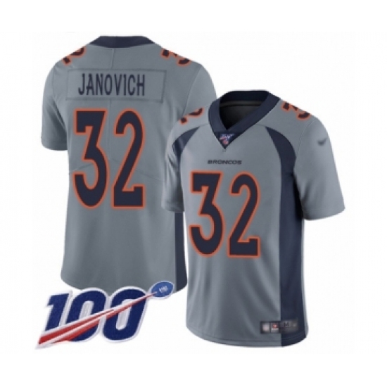>Men's Denver Broncos #32 Andy Janovich Limited Silver Inverted Legend 100th Season Football Jersey
