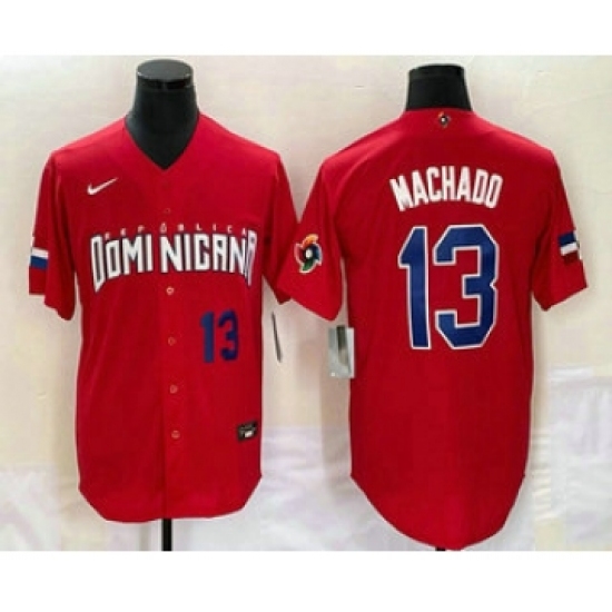 >Men's Dominican Republic Baseball #13 Manny Machado Number 2023 Red World Classic Stitched Jerseys