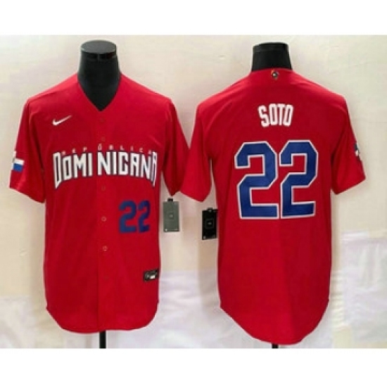 Men's Dominican Republic Baseball #22 Juan Soto Number 2023 Red World Classic Stitched Jerseys