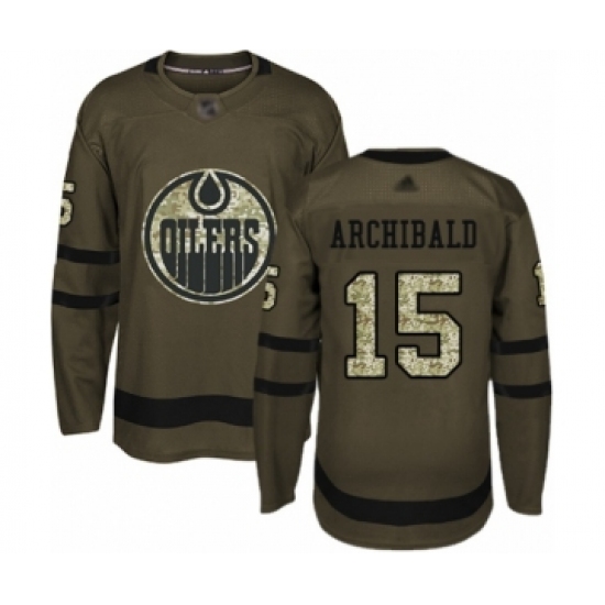 >Men's Edmonton Oilers #15 Josh Archibald Authentic Green Salute to Service Hockey Jersey