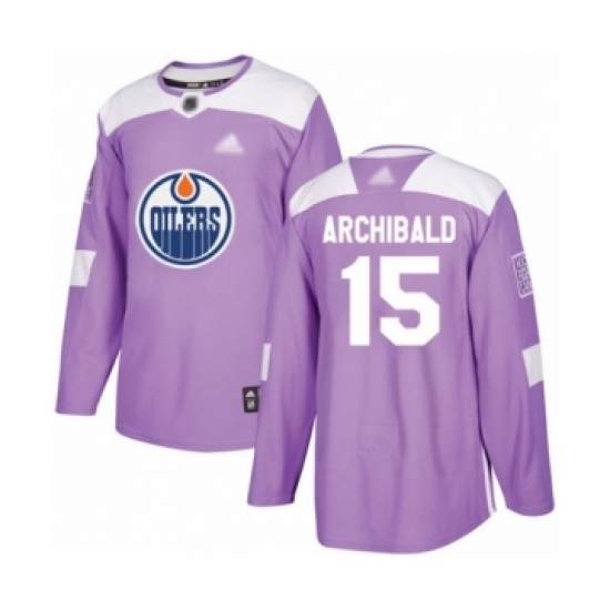 >Men's Edmonton Oilers #15 Josh Archibald Authentic Purple Fights Cancer Practice Hockey Jersey