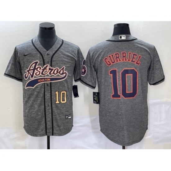 >Men's Houston Astros #10 Yuli Gurriel Number Grey Gridiron Cool Base Stitched Baseball Jersey1