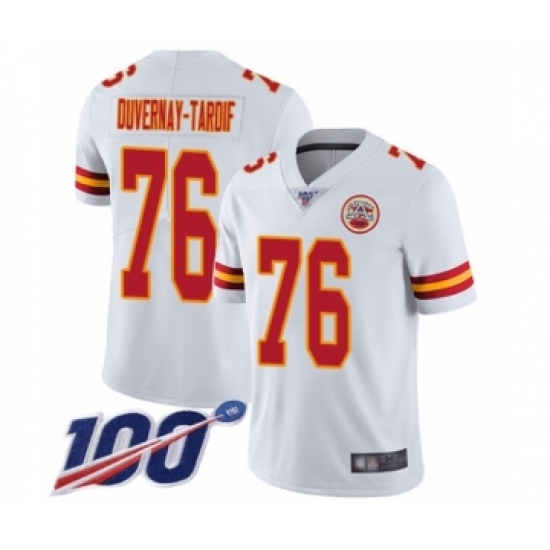 >Men's Kansas City Chiefs #76 Laurent Duvernay-Tardif White Vapor Untouchable Limited Player 100th Season Football Jersey