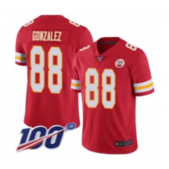 Men's Kansas City Chiefs #88 Tony Gonzalez Red Team Color Vapor Untouchable Limited Player 100th Season Football Jersey