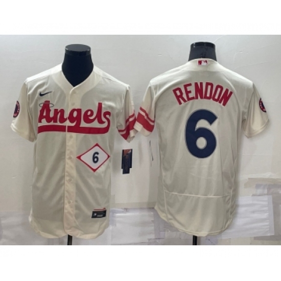 Men's Los Angeles Angels #6 Anthony Rendon Number Cream 2022 City Connect Flex Base Stitched Jersey