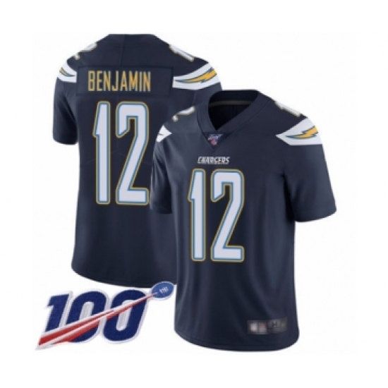 >Men's Los Angeles Chargers #12 Travis Benjamin Navy Blue Team Color Vapor Untouchable Limited Player 100th Season Football Jersey