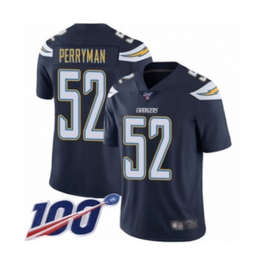 >Men's Los Angeles Chargers #52 Denzel Perryman Navy Blue Team Color Vapor Untouchable Limited Player 100th Season Football Jersey