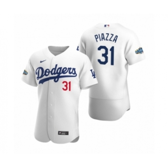 Men's Los Angeles Dodgers #31 Mike Piazza 2020 Home Patch White Authentic Jersey