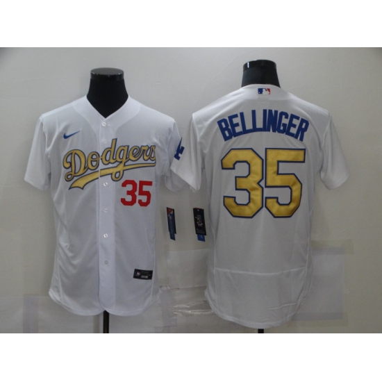 Men's Los Angeles Dodgers #35 Cody Bellinger Olive Gold Authentic Jersey